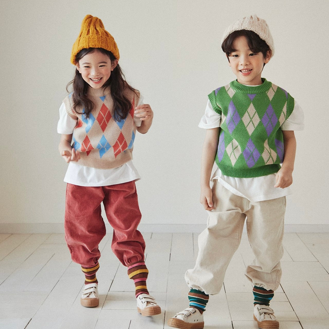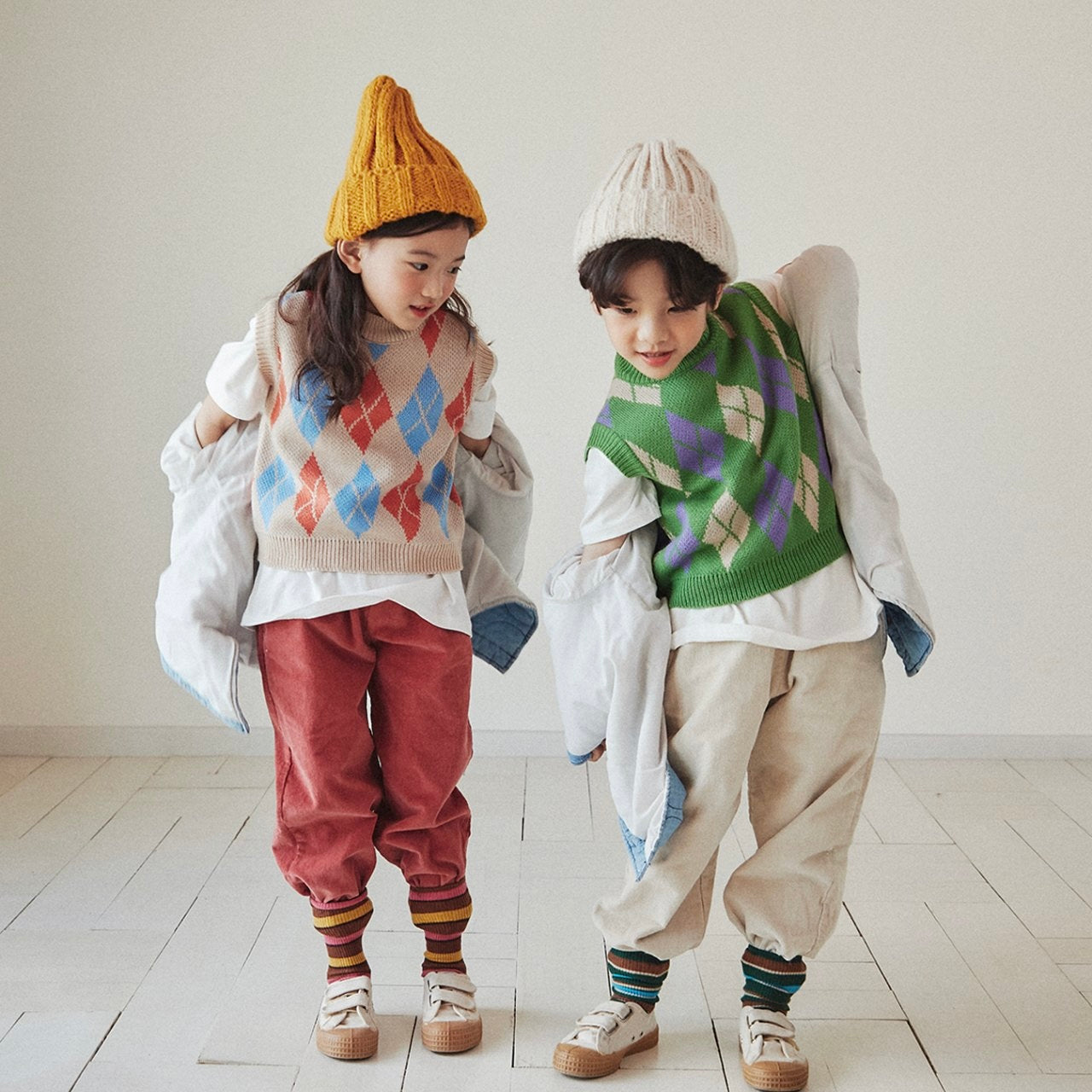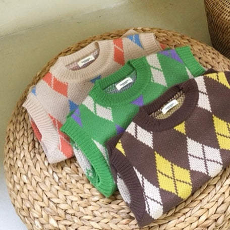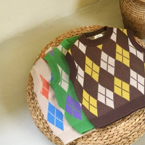 色合わせが何とも可愛いアーガイル柄のニットベスト